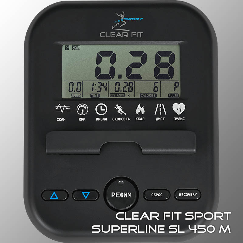 время тренировки / скорость / дистанция / калории / пульс / RPM |